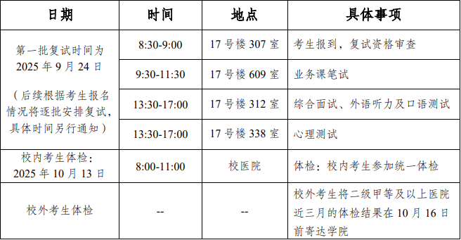 注:复试相关时间、地点如有调整,将电话通知考生。