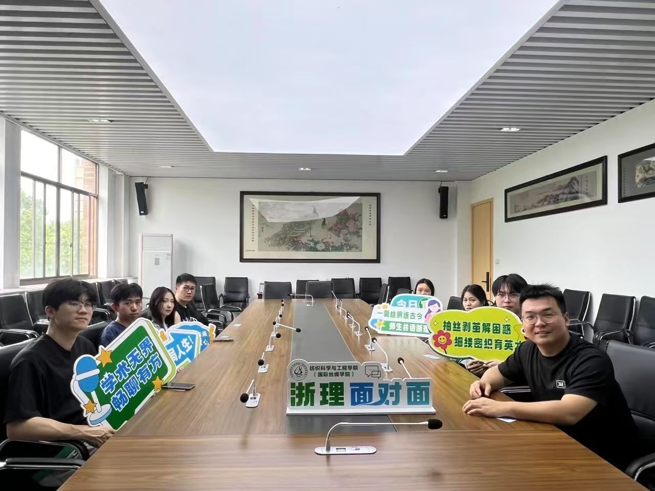 章煜面向浙江省现代纺织技术创新中心联合培养研究生召开专题交流活动。中心人力资源部部长刘金英,研究生管理员邓姗姗参会。刘金英详述了中心服务政策与未来规划,强调中心将持续恪守育人初心,力促学生身心和谐发展。针对学生提出的社交拓展需求,章煜表示将协调学院资源,为联合培养学生组织更多交流活动,丰富课余生活,营造温馨集体氛围。