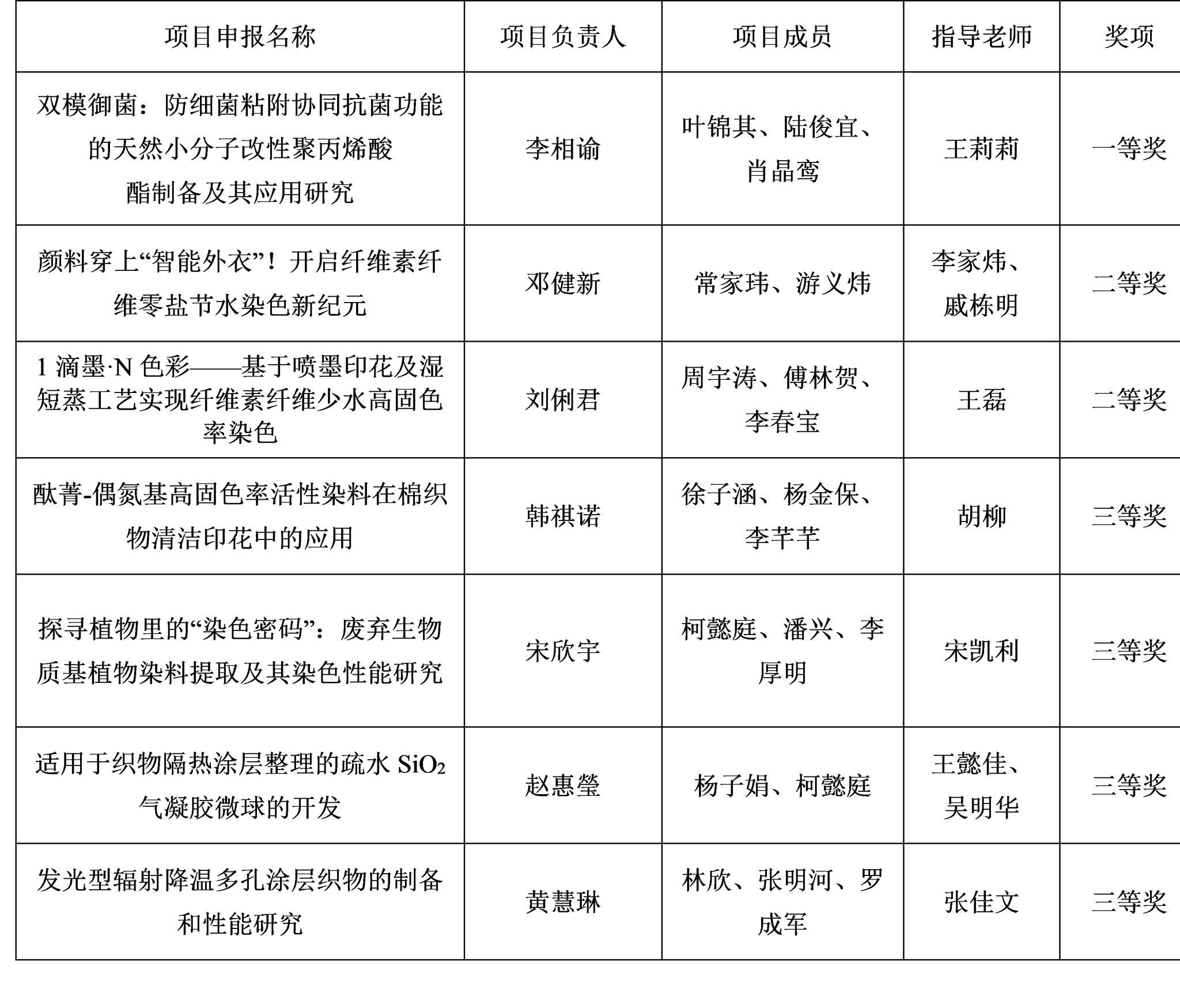 第六届全国大学生绿色染整科技创新竞赛项目获奖名单