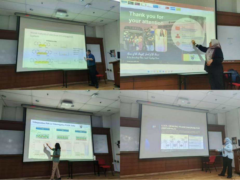 在经历了一周的语言环境适应后,第二周正式展开专业知识的课程,对化学、物理学、材料学等学科进行系统的学习,这也是此次访学的重点内容。专业学习对同学们而言颇具挑战性,专业名词的英语理解、每个老师的独特的讲课风格和口音习惯、学习内容的广泛发散,每一个因素都在考验着各位同学们,尽管如此,同学们依旧卯足劲汲取宝贵的知识。同学们除了听讲,还积极同讲课教授接触学习和互动,主动上台表达,共同展开实验(可降解塑料DIY)与撰写报告,完成小组展示。相信每一个同学都在这一周里收获了极大的成长,也与马来亚大学结下了愈发深厚的感情。